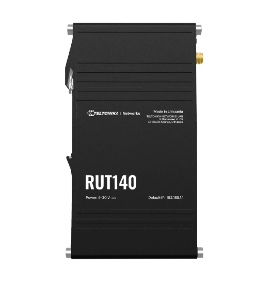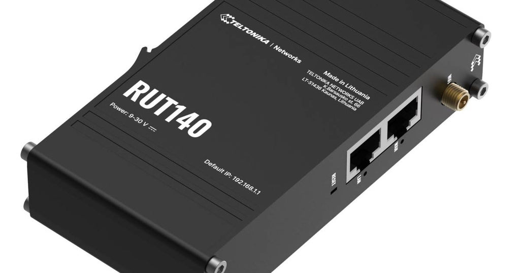 Industrijski usmerjevalnik RUT140 zagotavlja zanesljivo povezljivost v zahtevnih okoljih industrijskega sektorja (transport, proizvodnja, avtomatizacija itd.). Deluje na operacijskem sistemu rutOS.